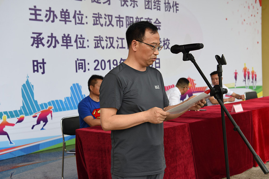青春五月,激情飛揚,風(fēng)雨助興,凱歌嘹亮。5月26日武漢市陽(yáng)新商會(huì )首屆會(huì )員運動(dòng)會(huì )在常務(wù)副會(huì )長(cháng)單位——武漢江南技術(shù)學(xué)校隆重開(kāi)幕。此次運動(dòng)會(huì )主題為:健身、快樂(lè )、團結、協(xié)作。