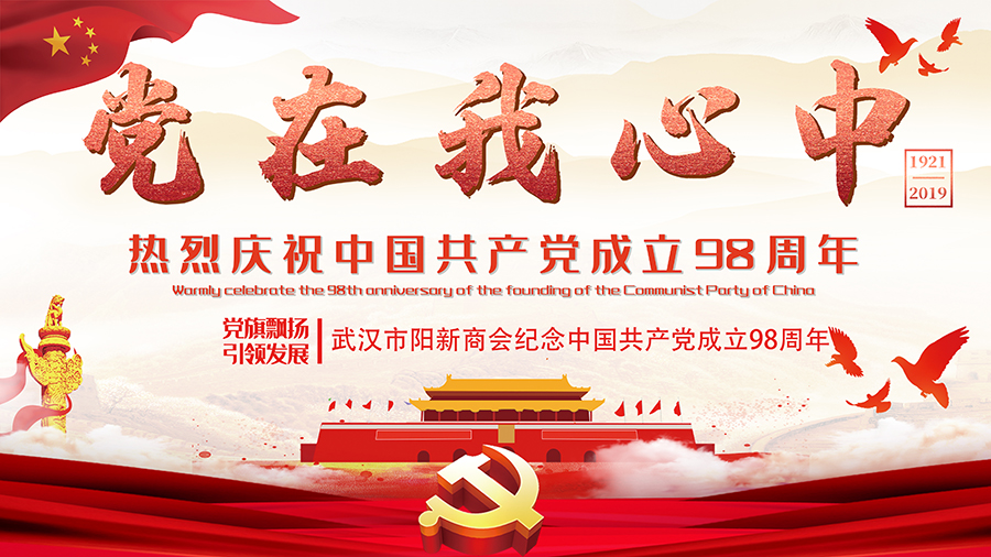 為紀念中國共產(chǎn)黨成立98周年,回顧黨的光輝歷程,謳歌黨的豐功偉績(jì),進(jìn)一步加強黨對商會(huì )企業(yè)的領(lǐng)導,用黨建工作引領(lǐng)商會(huì )工作,激勵商會(huì )黨員不忘初心,牢記使命,奮發(fā)進(jìn)取。在2019年7月1日上午,武漢市陽(yáng)新商會(huì )黨支部全體黨員和入黨積極分子匯聚一堂,隆重舉行紀念建黨98周年暨“黨在我心中”主題黨日活動(dòng)。