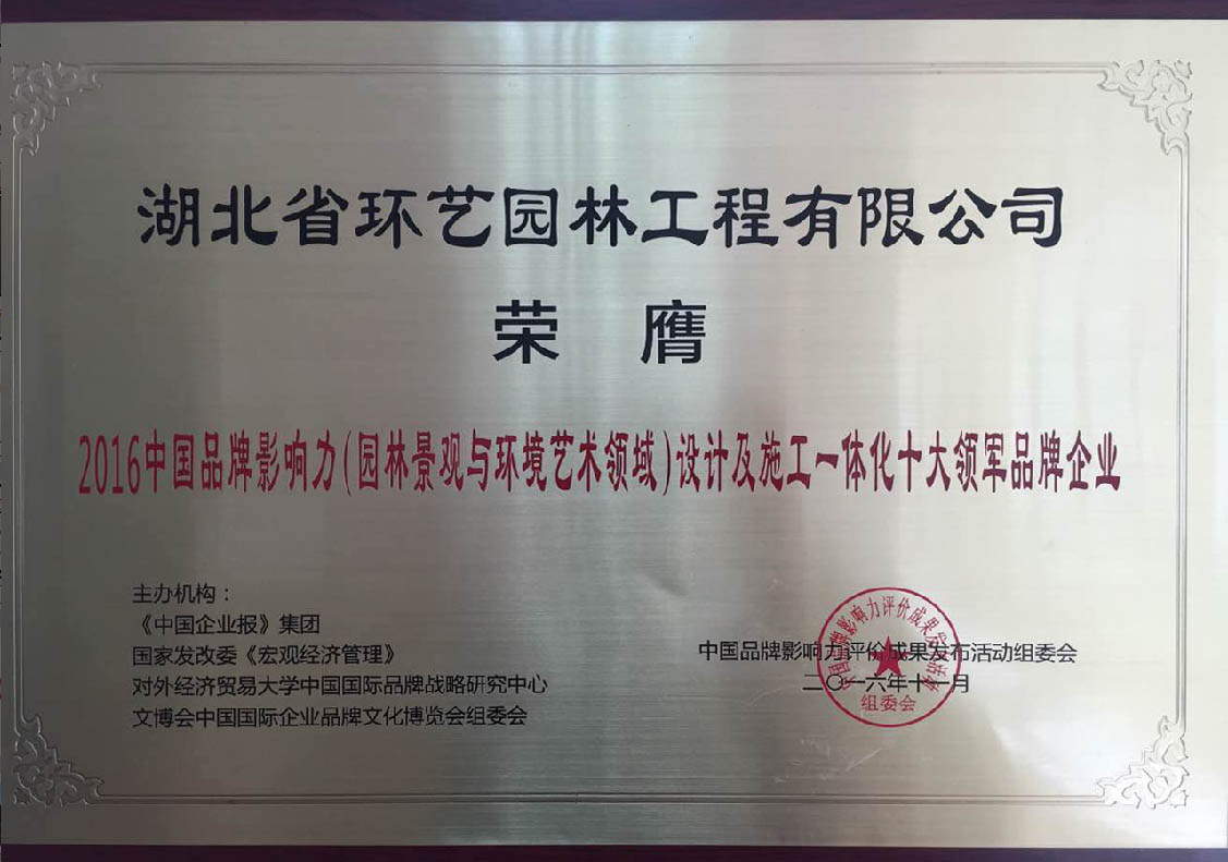 2016中國品牌影響力園林施工設計一體化十大領(lǐng)軍品牌企業(yè)