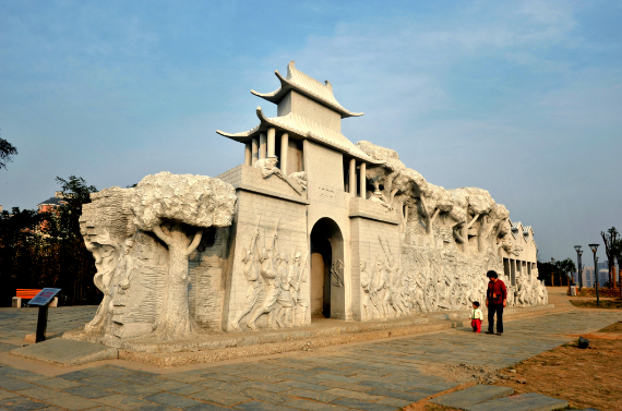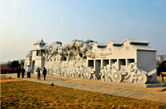 湖北省環(huán)藝介紹道,《首義烽火》雕刻了近100個(gè)按照真人比例設置的人物,他們有的在合力拖推大炮向城門(mén)進(jìn)發(fā);有的在城樓上偵查敵情;有的在搬運軍械彈藥;有的則作振臂高呼狀,浮雕設計生動(dòng)傳神、極富動(dòng)感,展現出一幅恢宏壯麗的歷史畫(huà)卷。除觀(guān)賞性外,此組雕塑更具觸摸感。屆時(shí)游客可穿行通過(guò)于群雕中的“城門(mén)和軍械庫門(mén)”,并可觀(guān)賞門(mén)兩側面的浮雕,近距離感受武昌起義景象。