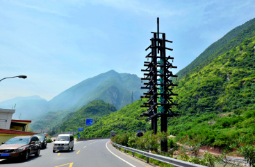 由“兩棵并蓮樹(shù)”構成的“森”字塔型標志,寓意神宜公路縈繞在樹(shù)木蒼勁、綠蔭環(huán)抱之中,懸掛在樹(shù)梢上的累累果實(shí)風(fēng)鈴,伴隨著(zhù)微風(fēng)吹拂,鈴聲輕吟,恰似禮儀小姐溫情提示:請注意安全、注重環(huán)保,祝您旅途愉快!預示神宜公路隨著(zhù)科技環(huán)保示范工程的創(chuàng )建,如輕吟聲遠播天際!