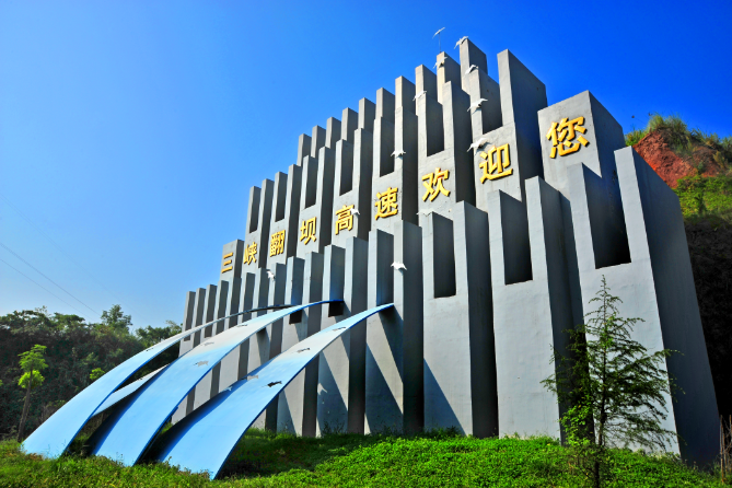翻壩高速宜昌大橋入口處《飛躍三峽》