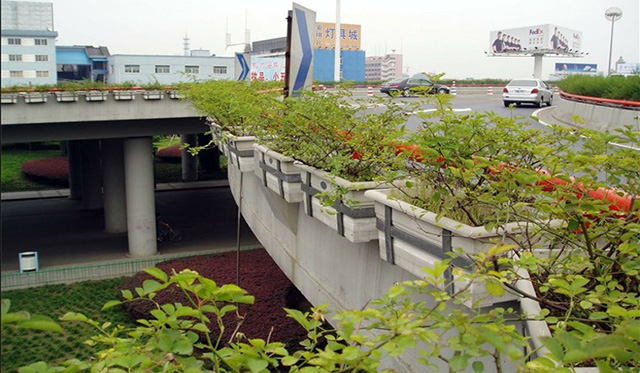 高架橋是城市交通的重要紐帶,每天穿梭往來(lái)于橋上的車(chē)流不計其數。隨著(zhù)城市綠化工程越來(lái)越細致的開(kāi)展,高架橋綠化也被看做城市綠化的一個(gè)重點(diǎn)項目。一些城市的高架橋下爬滿(mǎn)了爬山虎,油麻藤等藤本植物,看上去一片盎然綠意,另外一些城市則在高架橋的護欄上用立體綠化容器盛滿(mǎn)鮮花,不管如何裝扮點(diǎn)綴,高架橋綠化總能點(diǎn)亮人們的視線(xiàn),不可不謂“淡妝濃抹總相宜”。