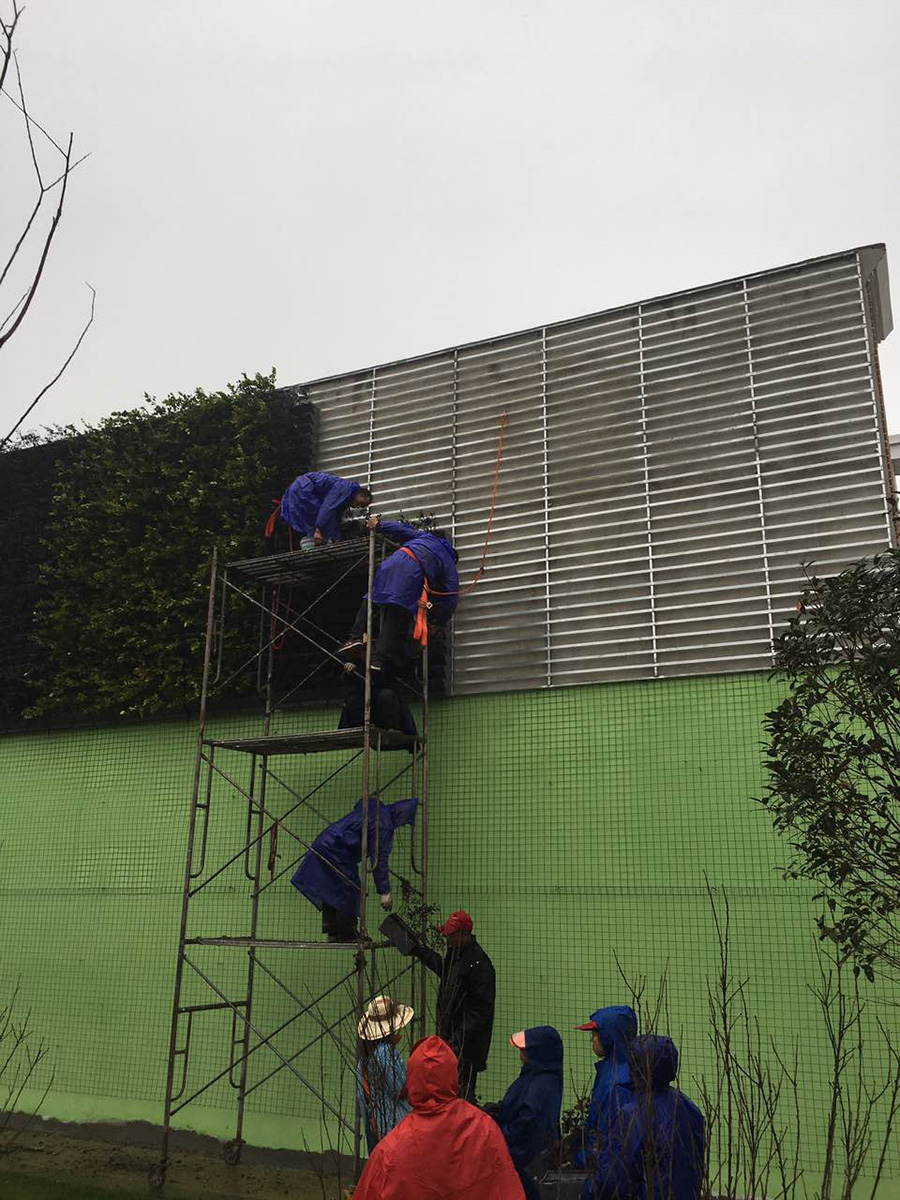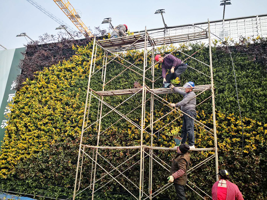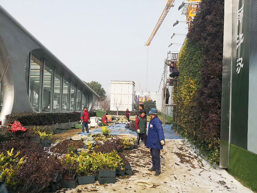 我們葛洲壩國際廣場(chǎng)生態(tài)圍擋綠墻項目正在施工中。