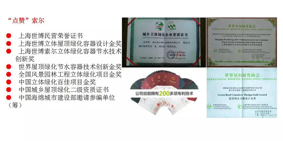 200多項專(zhuān)利產(chǎn)品,多個(gè)國內外立體綠化獎項,全方位的系統解決方案,專(zhuān)業(yè)的立體綠化團隊等,都是我們服務(wù)背后的強大支撐與后盾。