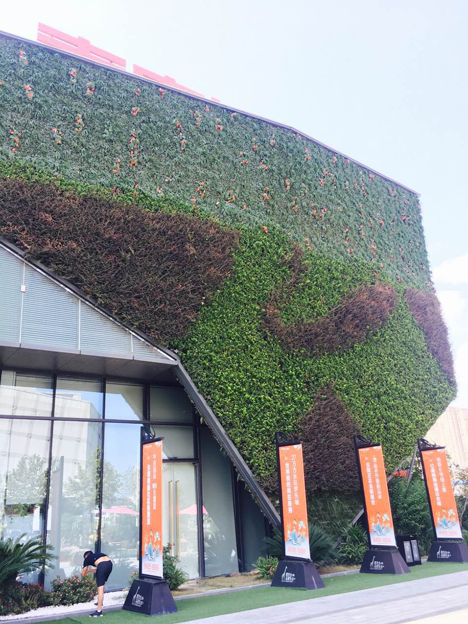 此綠墻高度達18米,綠化面積達600多平方米,且為不規則異形墻面,是目前武漢地區最大的立體綠化項目。