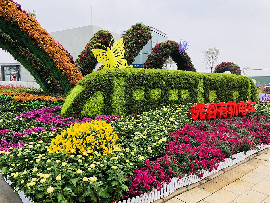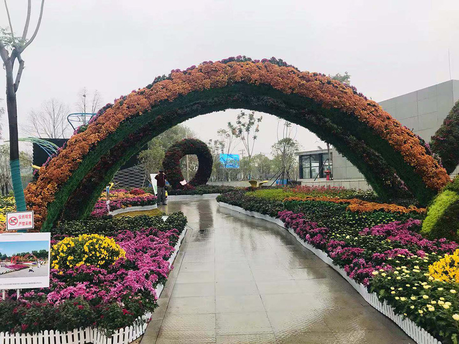 菊展大多采用立體綠化的綠雕形式來(lái)展現,湖北環(huán)藝建設集團有幸參與了武漢市第35屆金秋菊展的打造,我們以己之長(cháng),用專(zhuān)業(yè)的立體綠化解決方案,不斷豐富、完善菊展的形式和工藝。