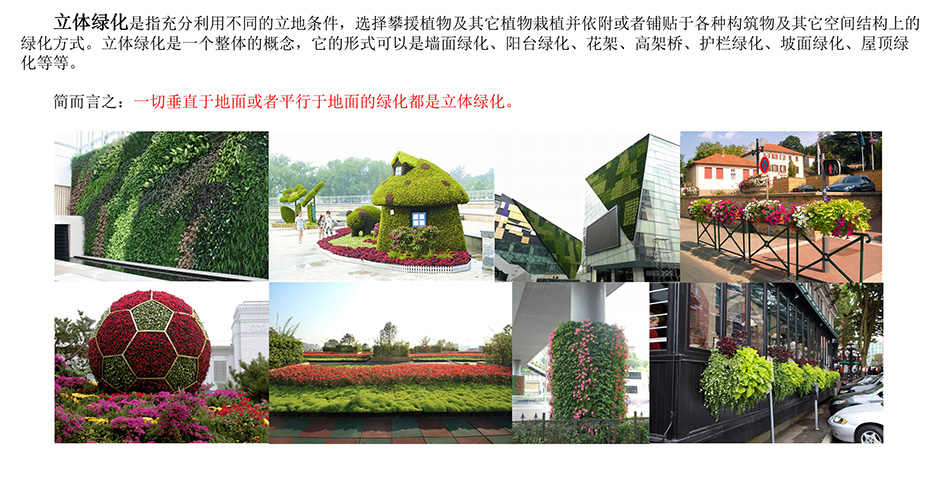 立體綠化是什么呢?簡(jiǎn)而言之,一切垂直于或平行于地面的綠化都是立體綠化。